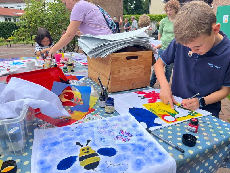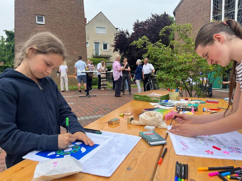 Ein schöner Platz in unserer Gemeinde ist immer wieder der Kirchplatz. Dort gab es im Anschluss Begegnungen beim Kirchenkaffee und bei Bastelaktionen.
