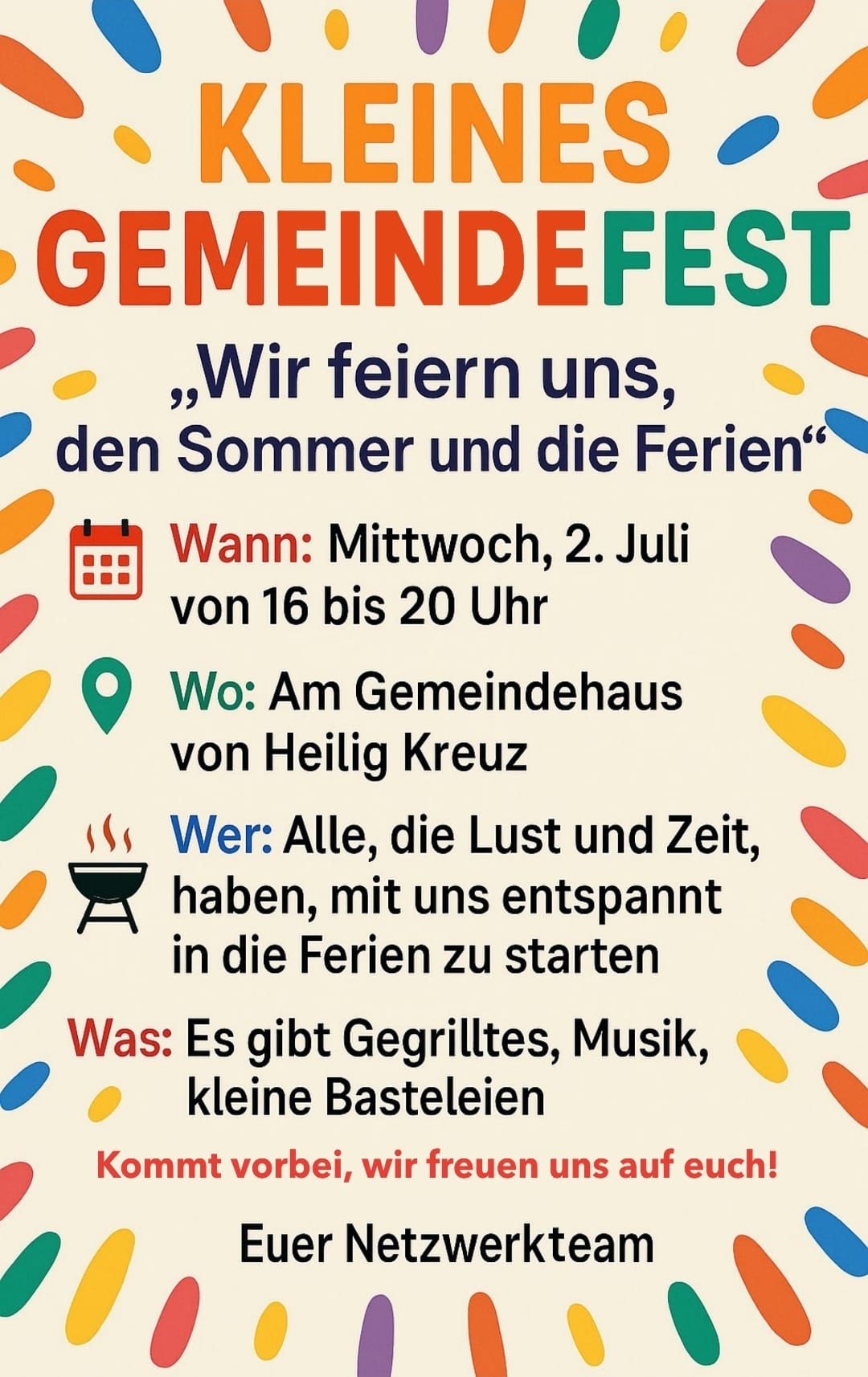Das Netzwerkteam lädt ein, sich am letzten Schultag nochmal zu treffen und miteinander den Sommer zu feiern.