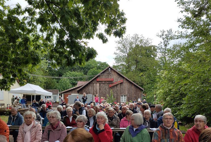 Morgens weckte uns ein strahlend blauer Himmel und am späten Vormittag traf sich eine bunte Himmelfahrtsgemeinde aus der ganzen Region am Jugendgästehaus zum alljährlichen Open-air Gottesdienst.