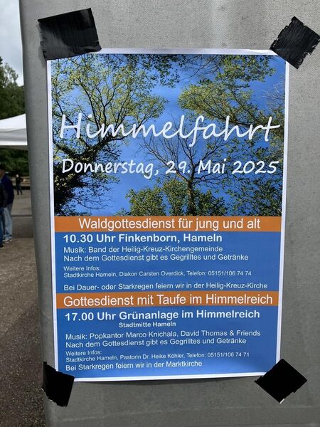 „Evrything you think, and evrything you say, evrything you do – do it in love“ sang die Kreuzkirchenband zum Ausgang, bevor ein starkes Ehrenamtlichen-Team der Stadtkirche uns zum leiblichen Wohl versorgte incl. einer leckeren vegetarischen Pfanne. Beschwingt radelte, wanderte oder fuhr man per Mitfahrgelegenheit am Ende in den Himmelfahrtstag.