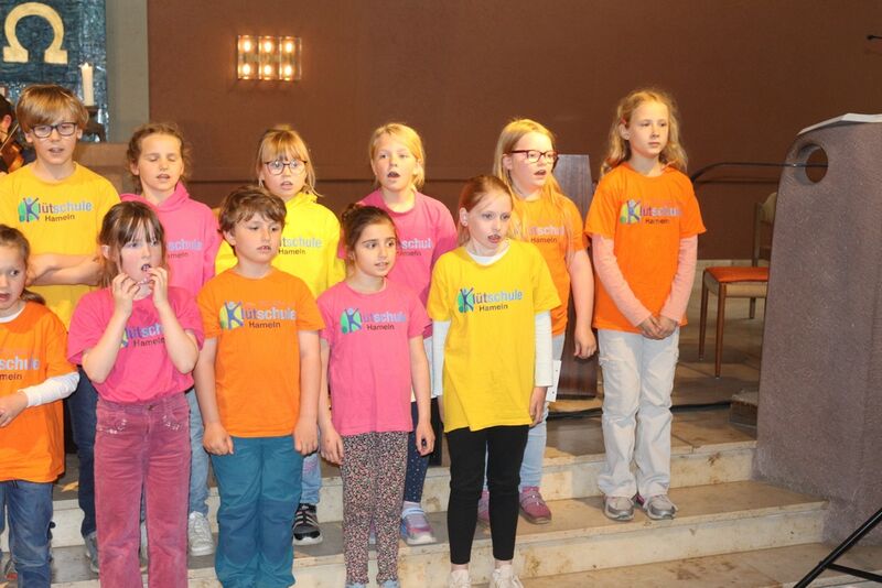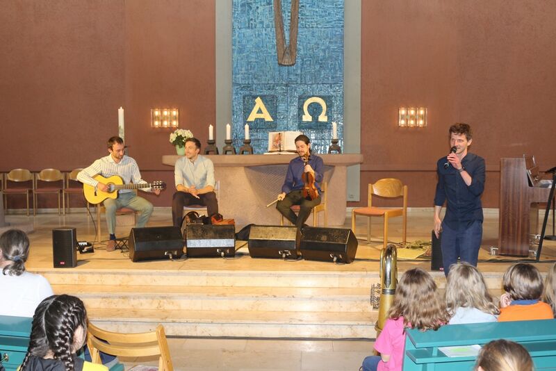 Am Nachmittag hatten wir die Musikwochen Weserbergland zu Gast, die uns ein wunderbares Familienkonzert der Musikergruppe "maxjoseph" bescherten. Zu Beginn stimmten schon die Kinderchöre der Klütschule und der Grundschule Hohes Feld auf die Freude am Singen und an Musik ein. Dann präsentierten die vier jungen Musiker aus Bayern mit ihren typischen Volksmusikinstrumenten die Geschichte um das Lieblingslied der Prinzessin und hatten mit ihrer Virtuosität und Spielfreude und dem Eingehen auf die Kinder schnell das Publikum auf ihrer Seite.