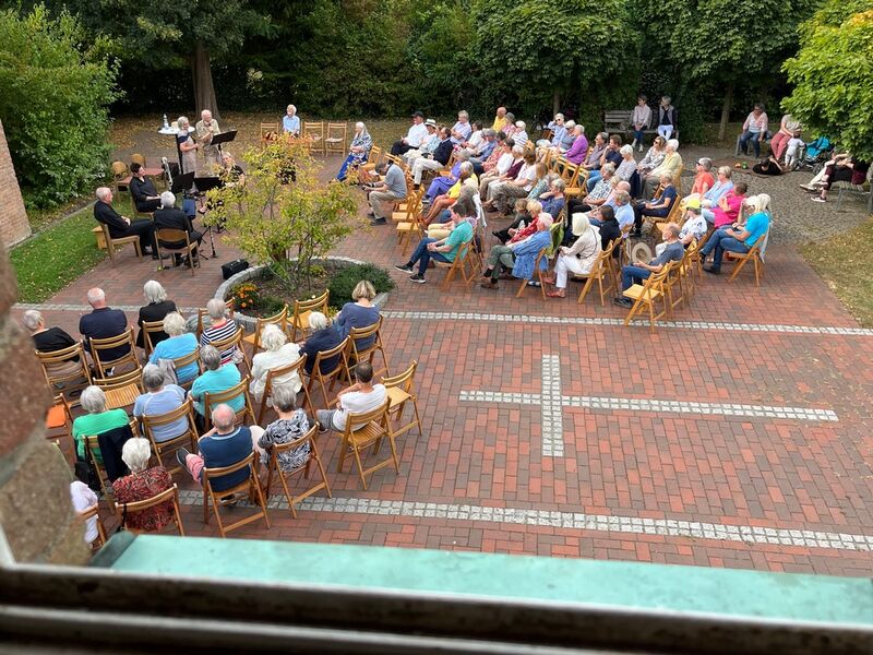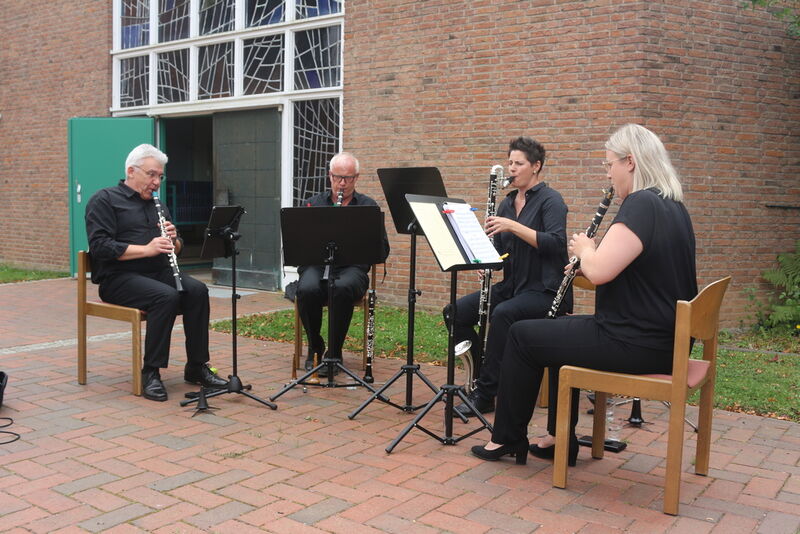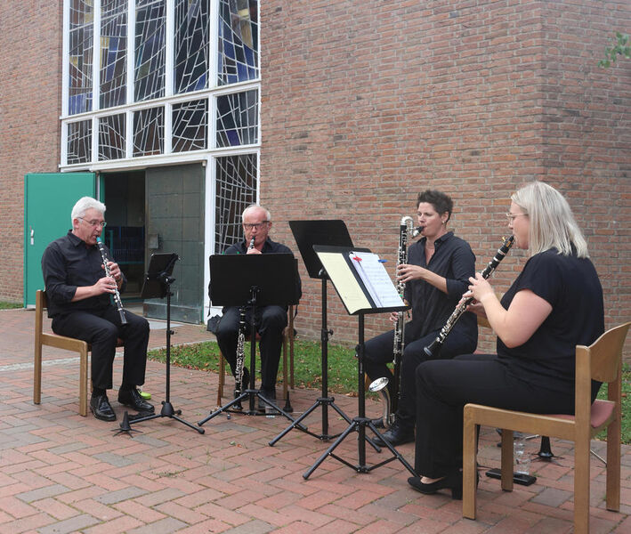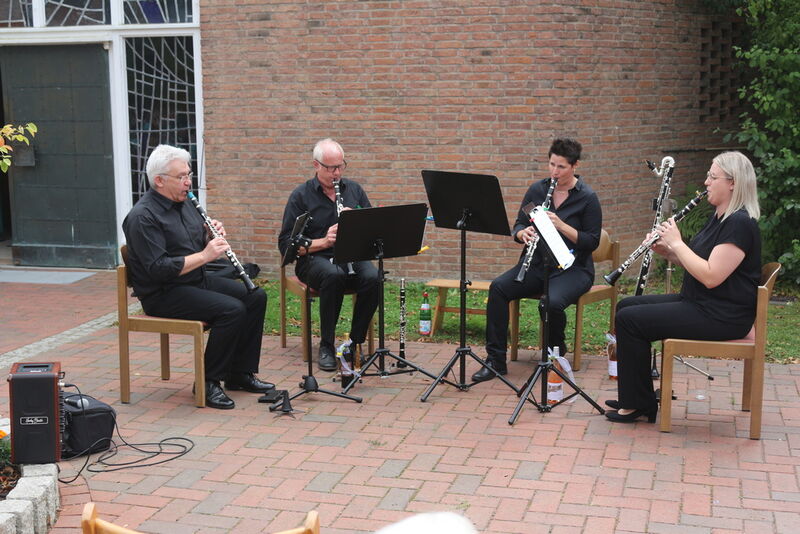 Der Spätsommertag lau, ein leichtes Lüftchen über dem Kirchplatz, 80 Leute sind da – und da spielen vier „Schwarzwurzeln“ eine würde- und schwungvolle Intrada aus einem 300 Jahre alten ungarischen Tanz, und facettenreich, auf hohem Niveau und humorvoll geht es musikalisch und poetisch weiter bei der KKKK am 31. August mit dem Klarinetten-„Quartetto Scorzonera“ und mit Gedichten, vorgetragen von Jutta und Dierk Rabien.