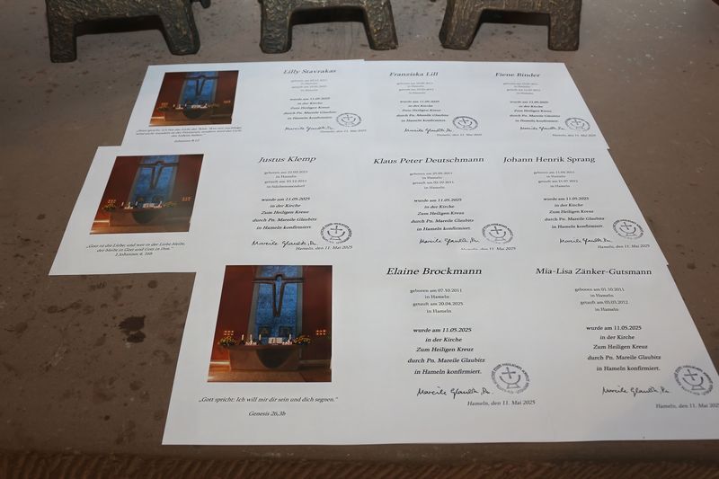 Fiene Binder, Elaine Brockmann, Klaus Deutschmann, Justus Klemp, Franziska Lill, Johann Sprang, Lilly Stavrakas und Mia-Lisa Zänker-Gutsman sind durch Pastorin Glaubitz in der Kreuzkirche konfirmiert worden.