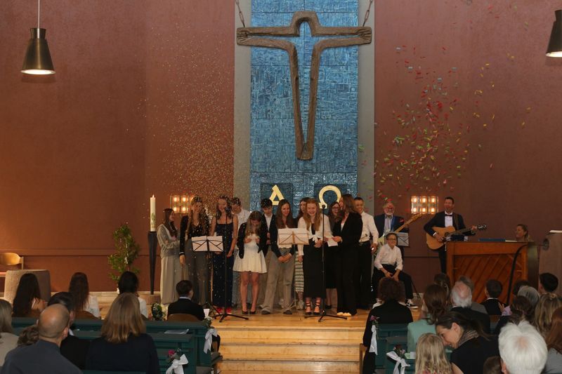 Und jetzt war der Festgottesdienst zur Konfirmation mit voller Kirche und Musik von der Kirchenband!