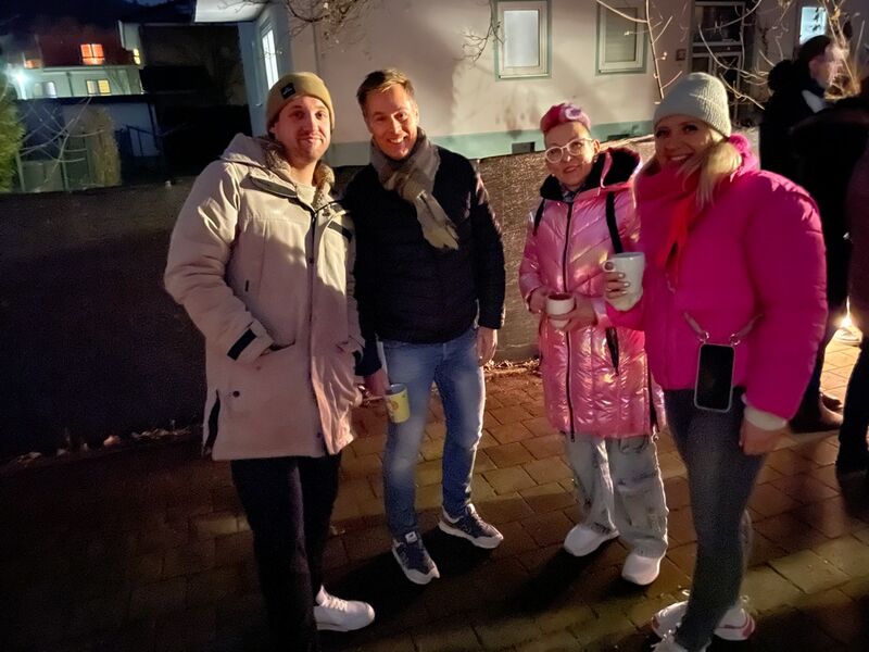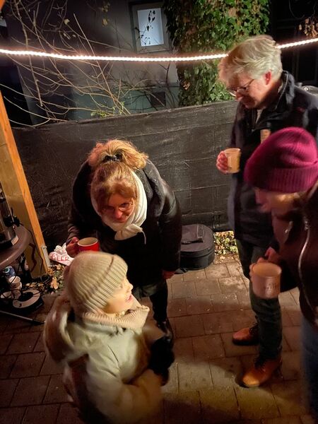 An sechs Abenden an unterschiedlichen Wochentagen treffen wir uns um 18:30 in den Carports oder Terrassen der Gastgeber bei Punsch, Schmalzbrot und Gebäck.