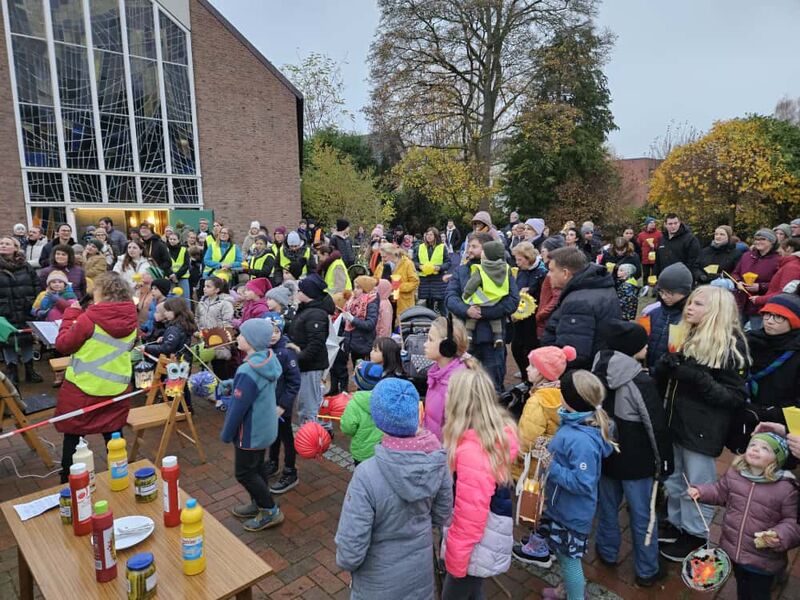 Und so trafen sich rund 300 kleine und große Menschen auf dem Kirchplatz der Kreuzkirche. Pastorin Mareile Glaubitz erzählte die Geschichte vom Heiligen Martin und im Anschluss zog sich ein langer Zug mit vielen Kindern und ihren Familien durchs Klütviertel und brachten mit ihren meist selbstgebastelten Laternen Licht in die Straßen.