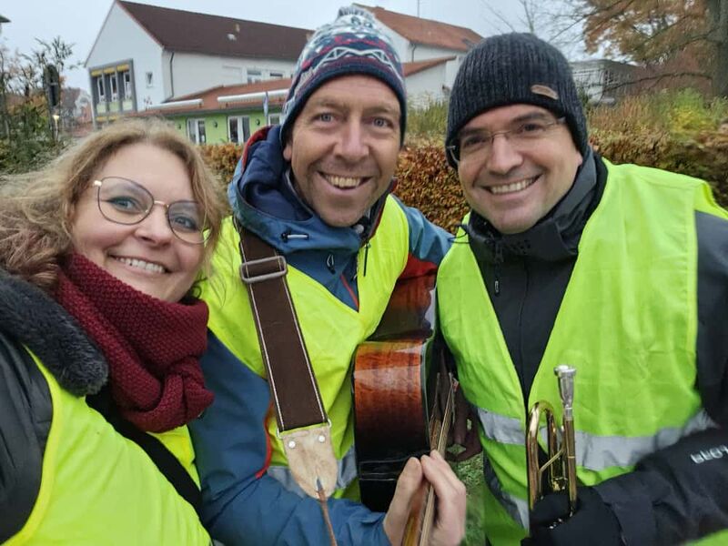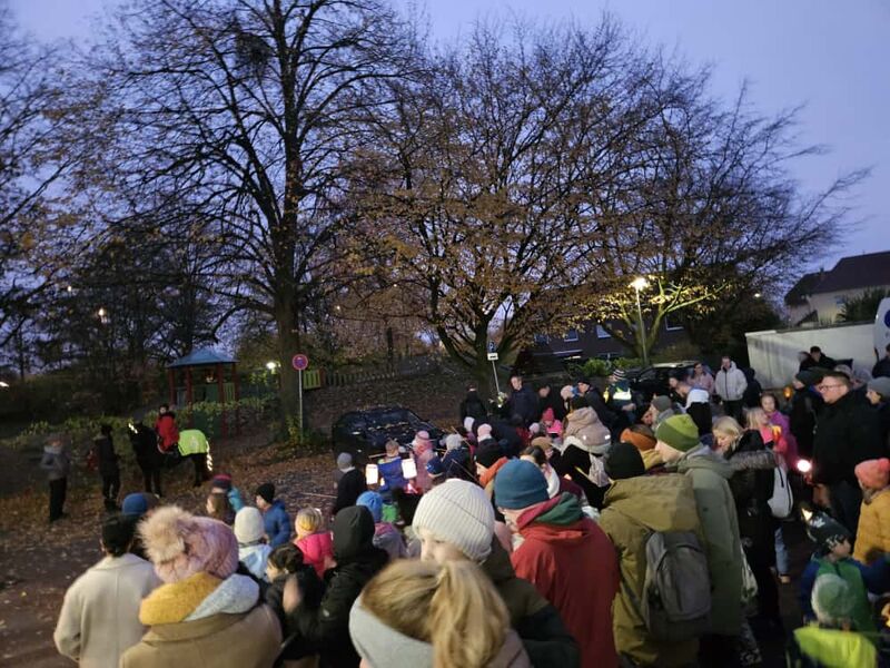 Das engagierte Team der Klüt-Kita begleitete mit jugendlichen Pfadfinder:innen den Weg. Alte und neue Laternenlieder wurden gesungen, mit Unterstützung der "Marching-Band" mit Trompete und Gitarren.