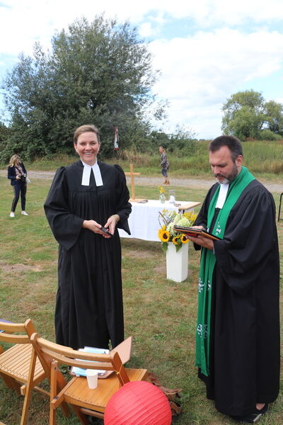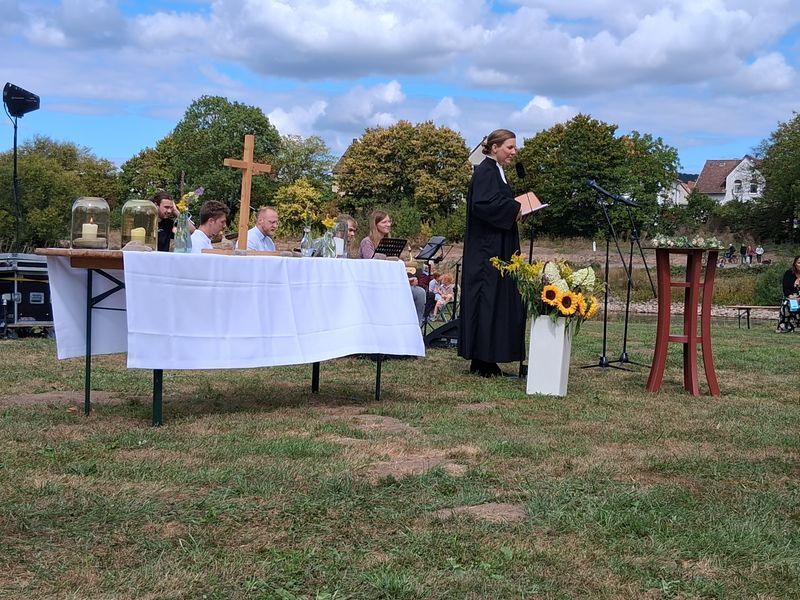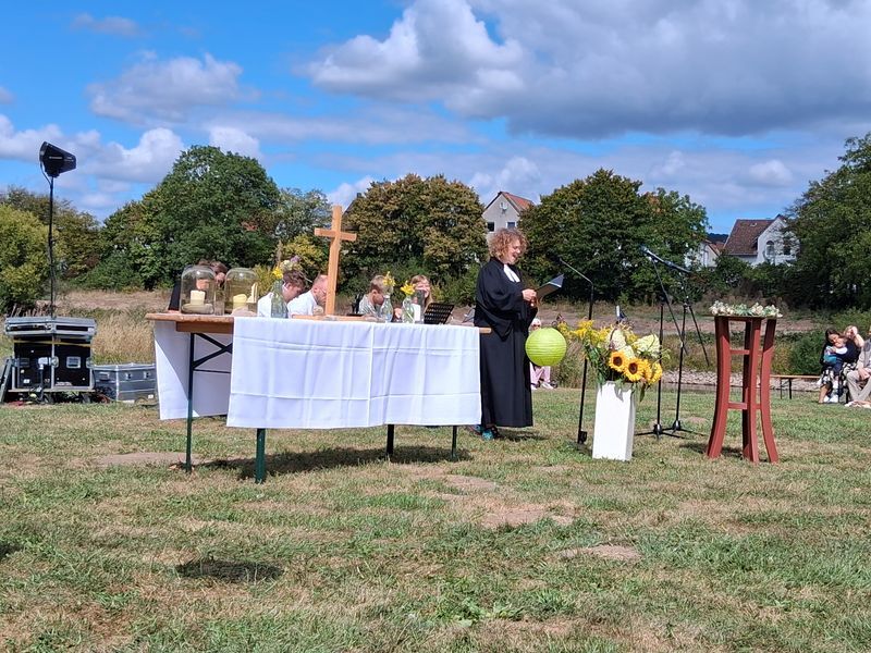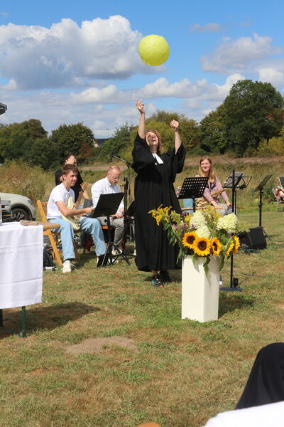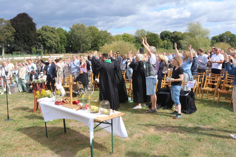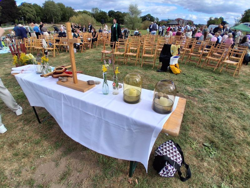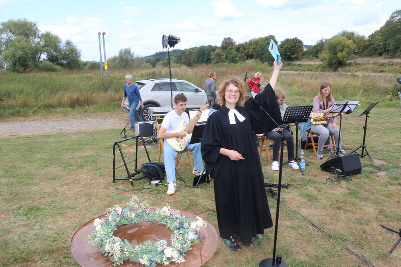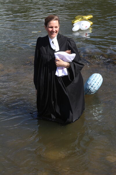 Die beteiligten Pastor:innen tauften Kinder und Jugendliche mit Weserwasser, Familien, Freunde und Gemeinde begleiteten die Täuflinge bei diesem Ereignis. Popkantor Marco Knichala sorgte mit seiner Band für die Musik und viele fleißige Hände für das Kaffeetrinken und Bastelangebote im Anschluss.