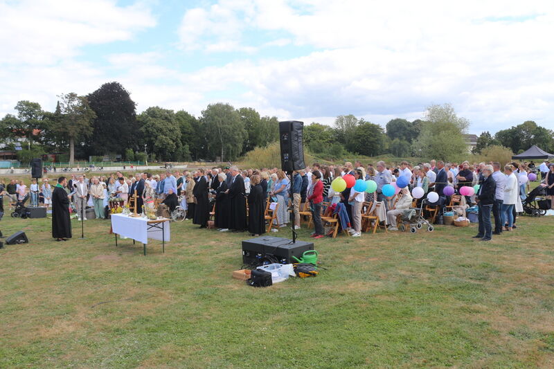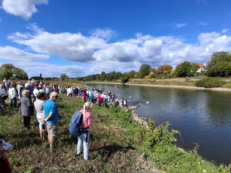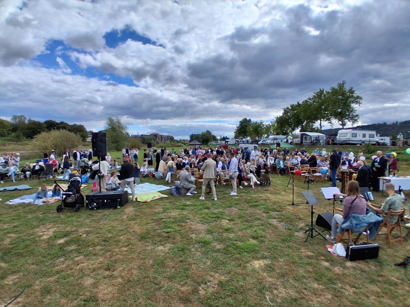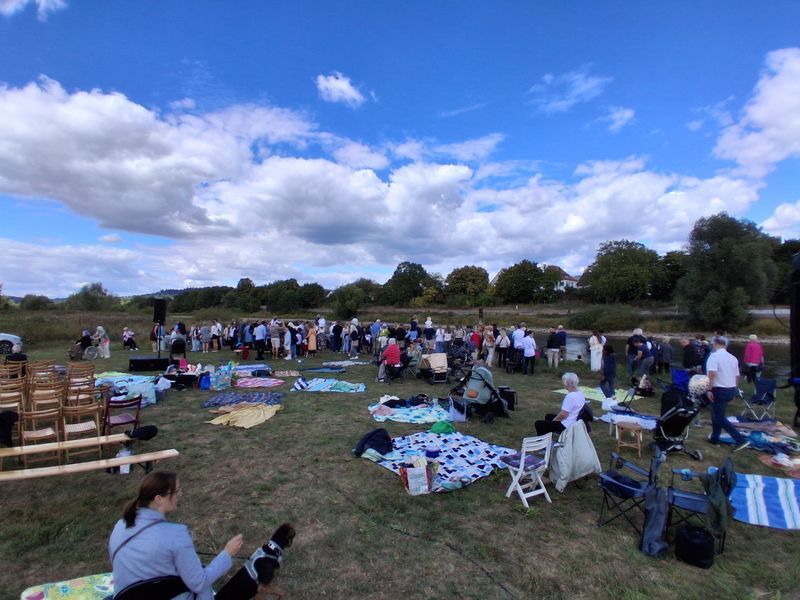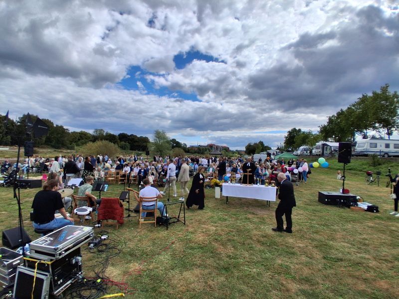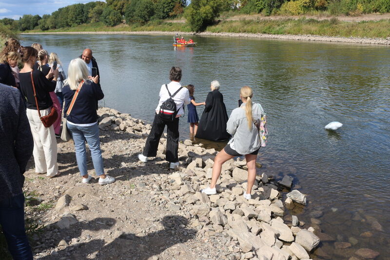 Zur Taufe gehört Wasser, immer. Aber Taufe mit Weserwasser ist schon etwas Besonderes. Am 24. August gab es das. Das Tauffest der Gemeinden aus der Innenstadt, Wangelist, Klein Berkel und Heilig Kreuz an der Weser, und zwar auf dem Campingplatz Uferstraße.