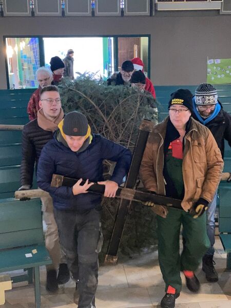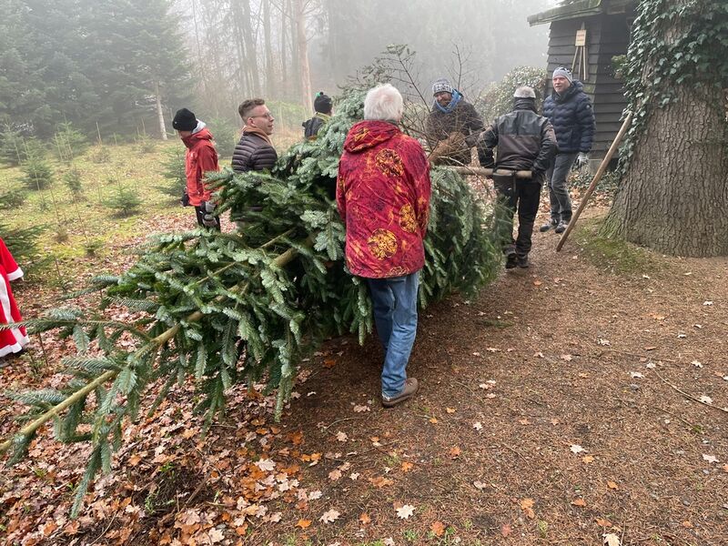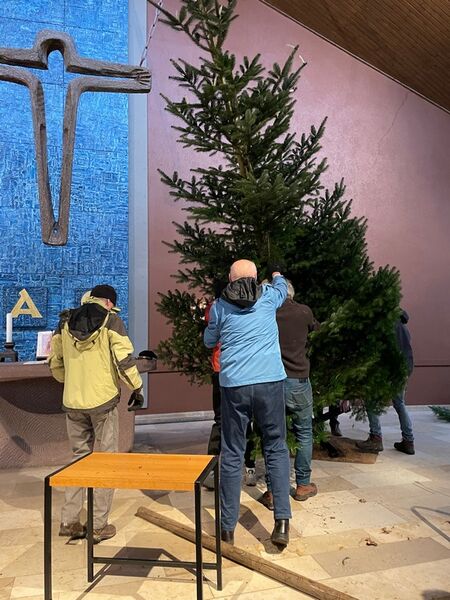 Wie immer gegen Ende der Adventszeit hat sich die Männerrunde aufgemacht, um einen schönen Weihnachtsbaum für die Kirche zu fällen und aufzustellen.