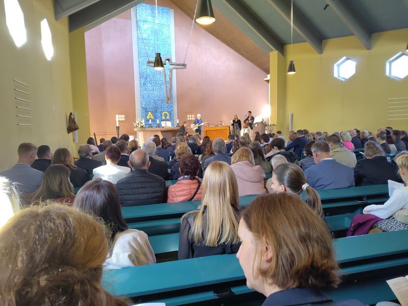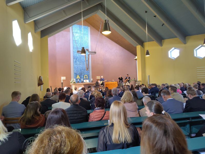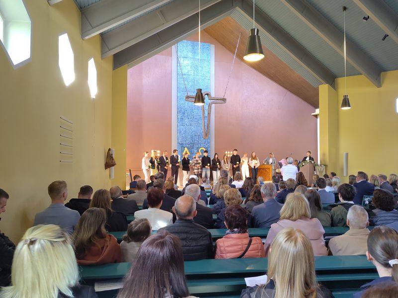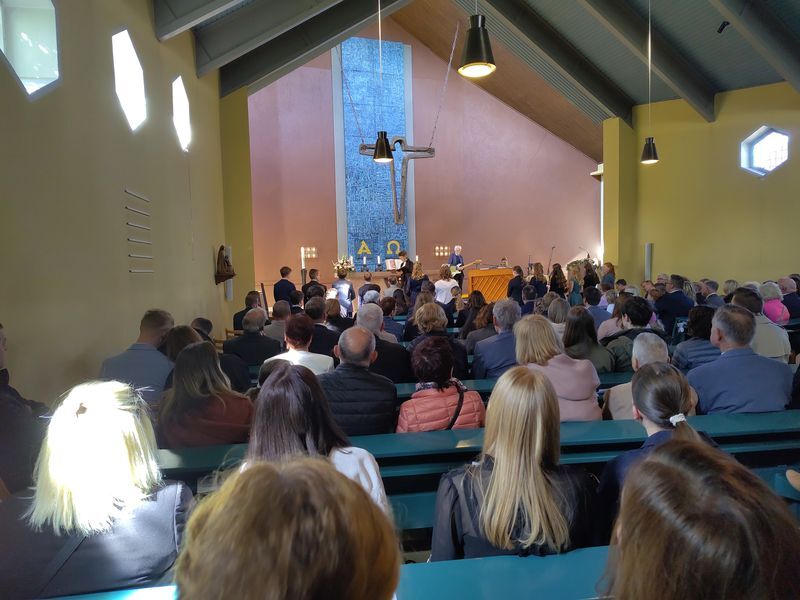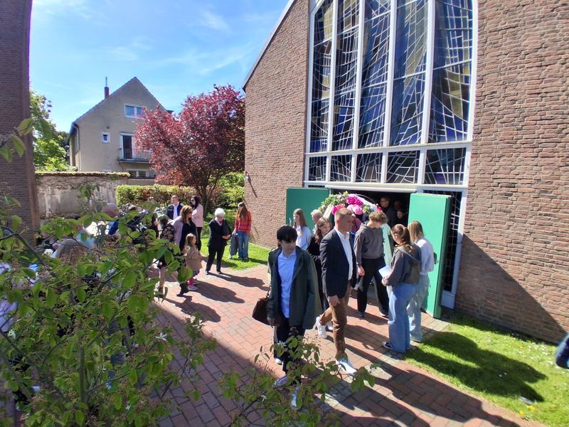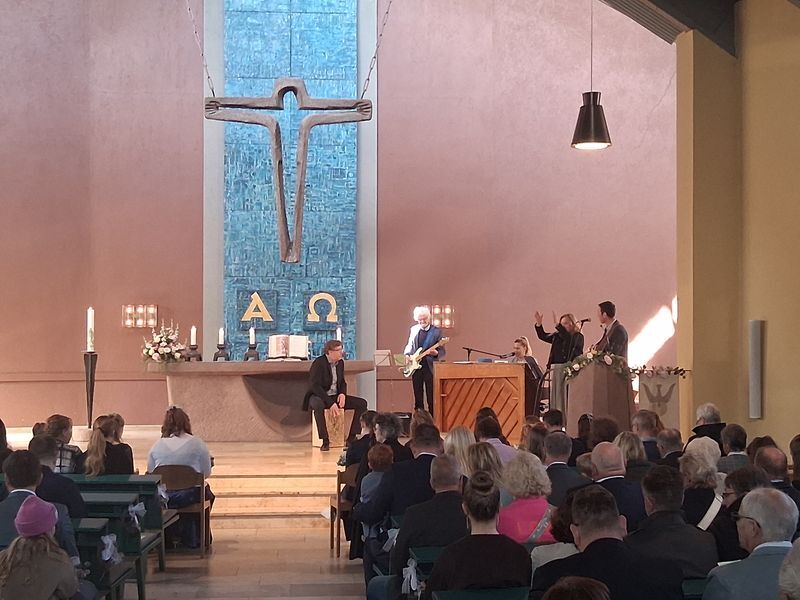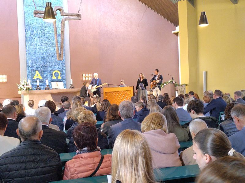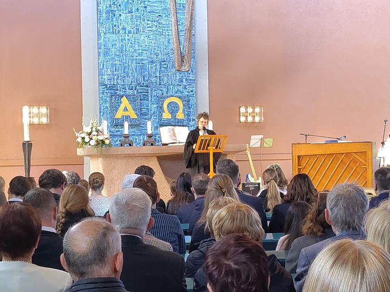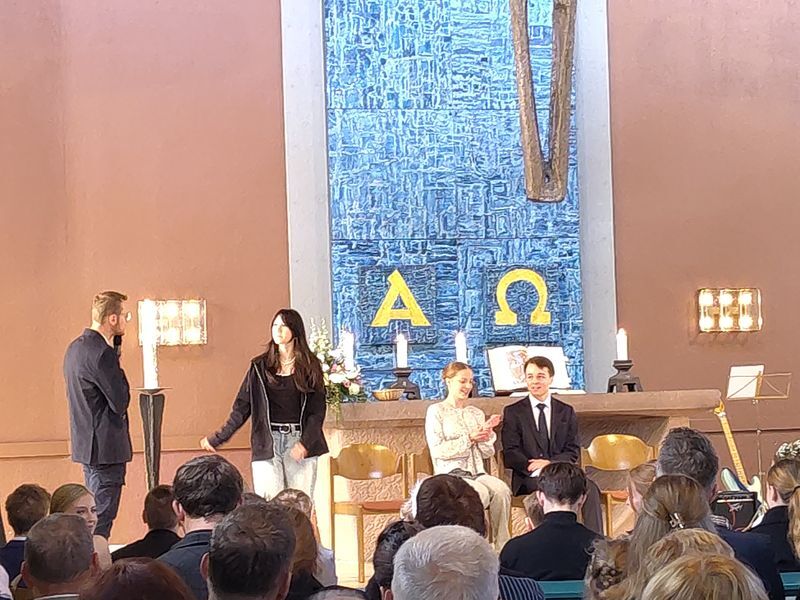 Es gab die Schätze der festlich fröhlichen Konfirmandinnen und Konfirmanden zu bewundern, die eingesegnet wurden, ebenso das große Konfiteam, das die Konfirmandenzeit begleitet und mitgestaltet hatte und die Gemeinde mit einer Impro-Theaterszene erfreute. Die musikalische Begleitung durch Orgel und Kirchenband und die wunderbar geschmückte Kirche zeigte den Schatz solcher besonderen Anlässe.