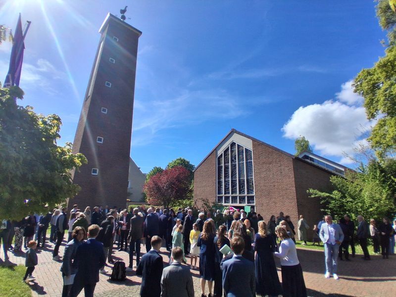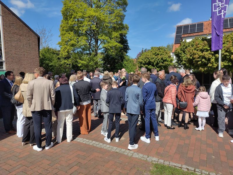 Bei passendem Wetter und entspannter Stimmung konnten im Anschluss unsere diesjährigen Konfirmierten: Marie Armgardt, Enna Bock, Lars Bradtmöller, Julius Harms, Felix Kleinsorge, Jonas Kleinsorge, Sophie Kohlenberg, Tarmina Krieger, Charlotte Lenz, Hanna Ludwig, Jonas Lüdtke, Emma Schönherr und Lina Stührenberg beglückwünscht und gefeiert werden.