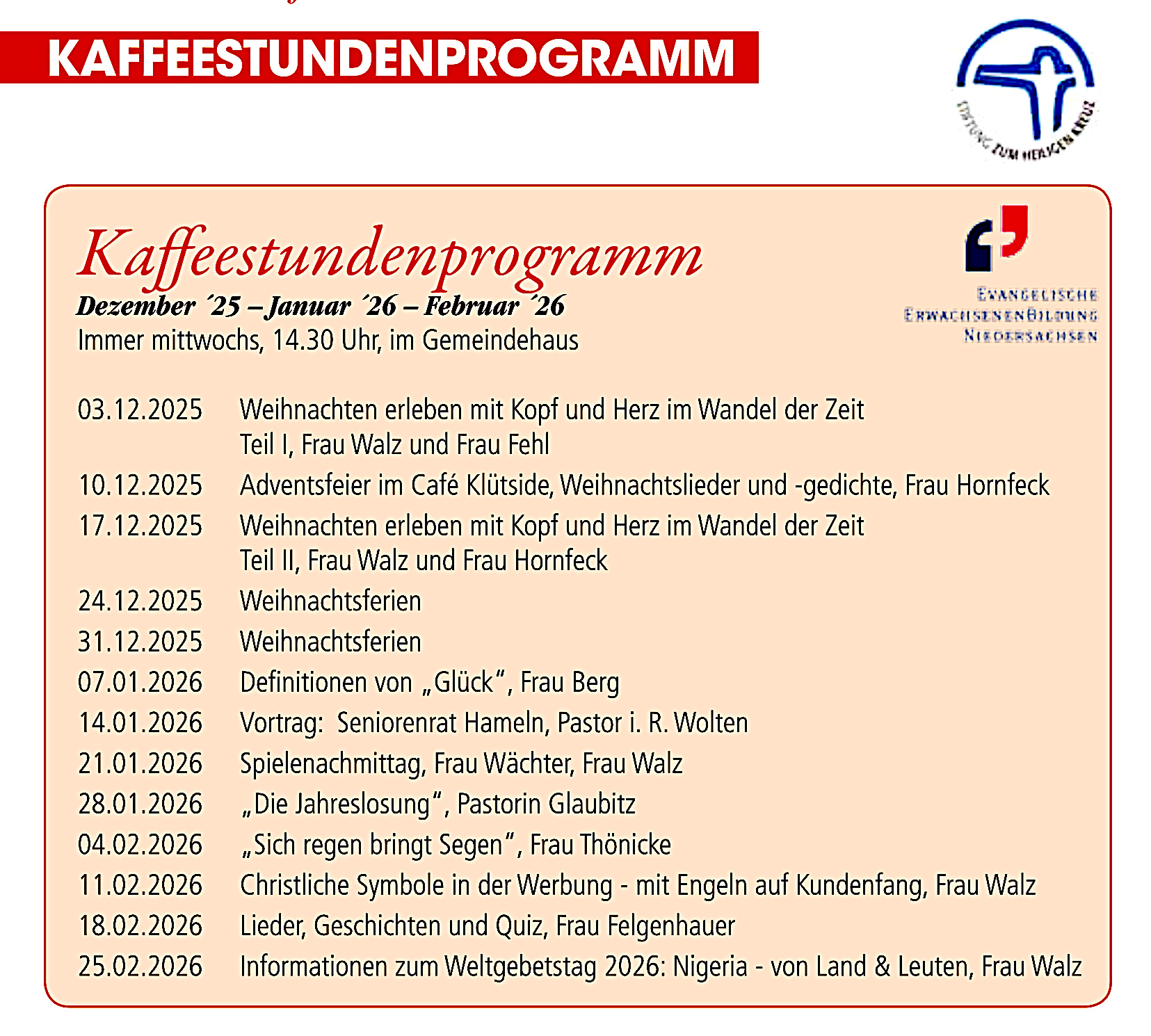 Jeden Mittwoch von 14.30 Uhr bis 16.30 Uhr spielen, singen, rätseln und feiern wir gemeinsam im Gemeindehaus.